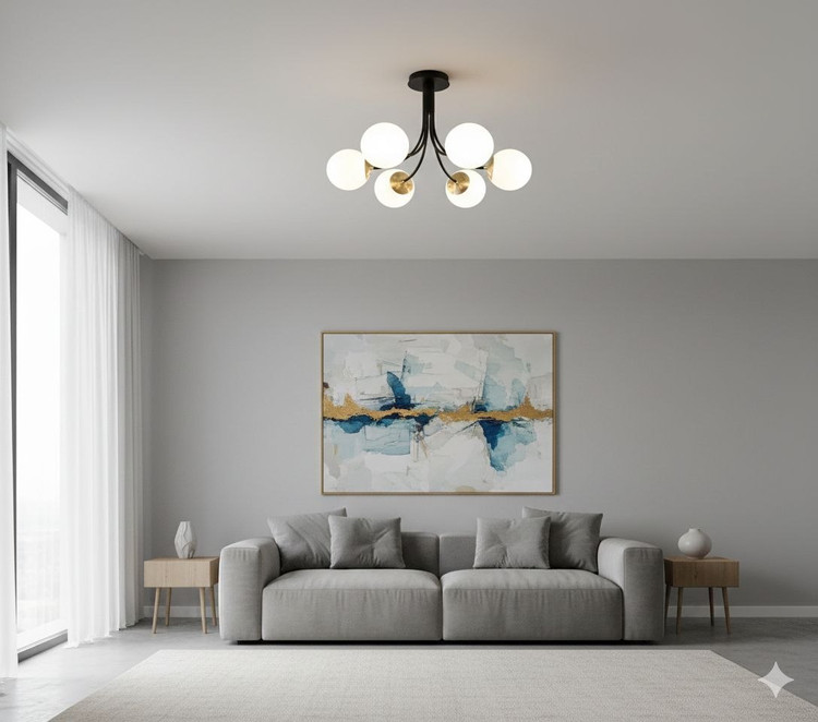 لوستر مدل A235.6 با ۶ شاخه منحنی و حبابهای متقارن، ترکیبی از لطافت و سادگی را به سقف خانه شما میآورد.
